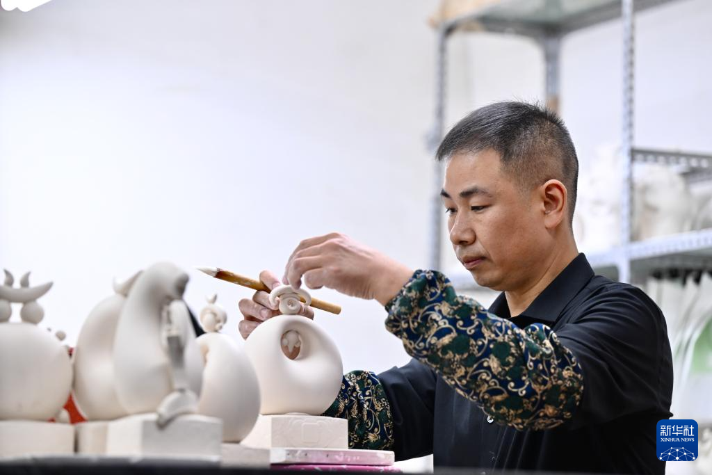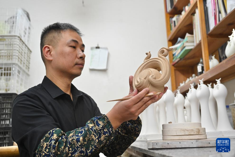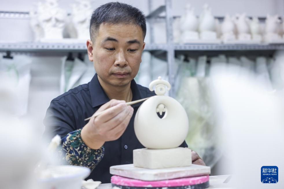 12月(yue)6日,彭成雄在(zai)位于福建(jian)省泉州市德化縣的工作室內進(jin)行(xing)修坯工作。