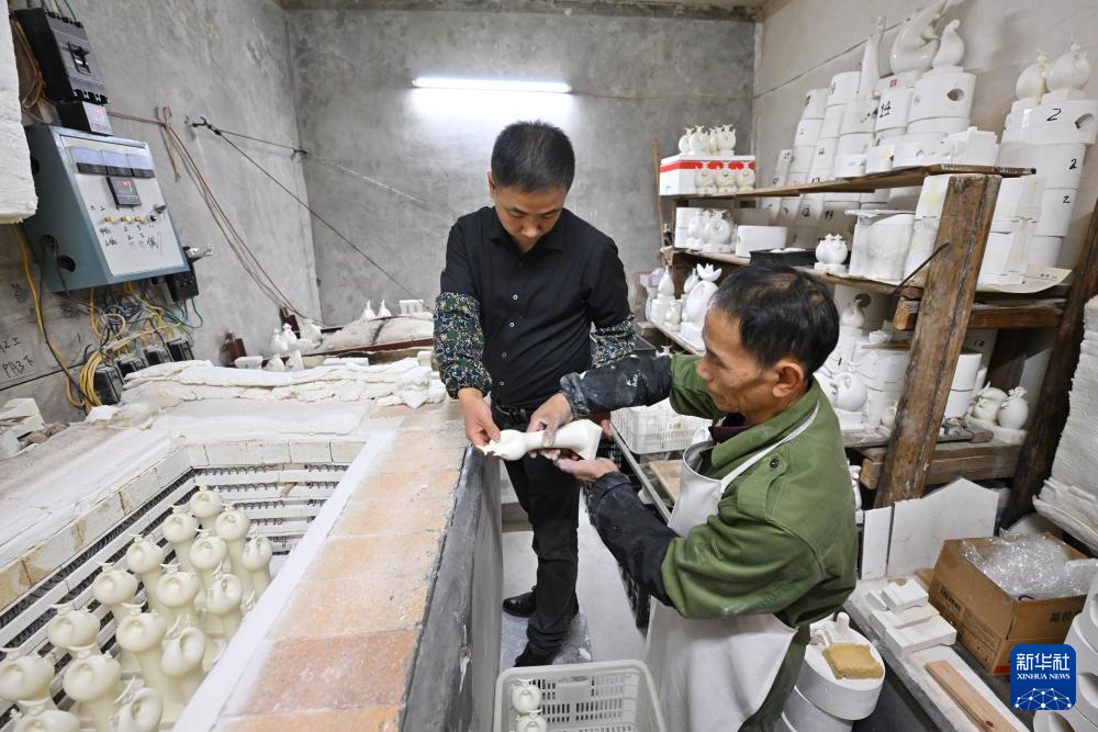 12月6日,彭(peng)成雄(左)在位于福建省泉(quan)州市德化(hua)縣的(de)工作室內與父親一(yi)起將燒制(zhi)好的(de)陶瓷作品出爐。