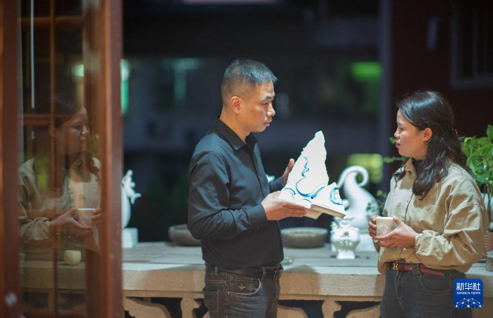 12月6日,彭(peng)成(cheng)雄與妻子鄭寶珠在(zai)位于(yu)福建省(sheng)泉州市德(de)化縣的工作室內交流(liu)設計(ji)思(si)路。