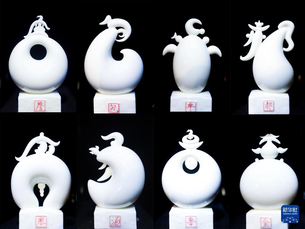 如今(jin)的(de)(de)(de)德化(hua)陶(tao)(tao)(tao)瓷產(chan)業正蓬勃(bo)發(fa)展(zhan),眾(zhong)多陶(tao)(tao)(tao)瓷從業者薪火相(xiang)傳(chuan),在傳(chuan)承的(de)(de)(de)同(tong)時不斷探尋德化(hua)陶(tao)(tao)(tao)瓷的(de)(de)(de)創新與發(fa)展(zhan)。彭成雄就是(shi)其(qi)中之一(yi),他將(jiang)中國漢(han)(han)字(zi)與傳(chuan)統陶(tao)(tao)(tao)瓷工(gong)藝巧妙結合,通過(guo)瓷雕(diao)將(jiang)漢(han)(han)字(zi)的(de)(de)(de)二(er)維線條、結構以立體的(de)(de)(de)形態(tai)表現(xian)出(chu)來,呈現(xian)出(chu)近似象形文(wen)字(zi)的(de)(de)(de)趣味感。彭成雄是(shi)這樣(yang)介紹自己(ji)的(de)(de)(de)藝術理念:“古代甲骨(gu)文(wen)是(shi)造像‘物’的(de)(de)(de)‘字(zi)’,而我是(shi)創作一(yi)個像‘字(zi)’的(de)(de)(de)‘物’。”他還將(jiang)標點符號(hao)融入(ru)自己(ji)的(de)(de)(de)藝術作品中,其(qi)《十二(er)生肖》《百家姓(xing)》系列作品,深受人們的(de)(de)(de)歡迎。