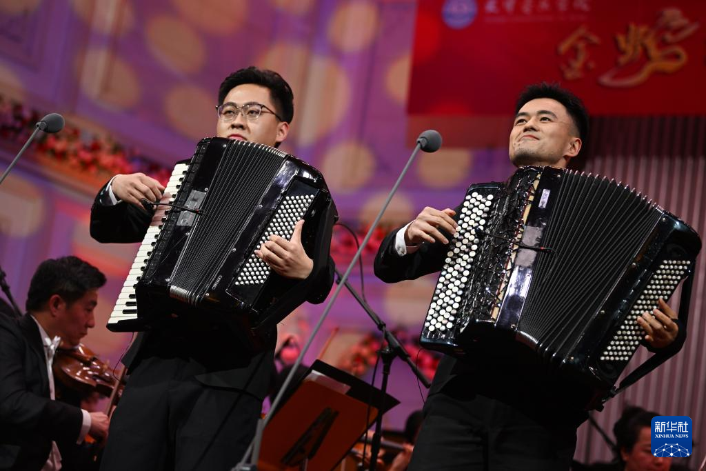 1月2日,演員在音樂會上演奏《春風春潮》。