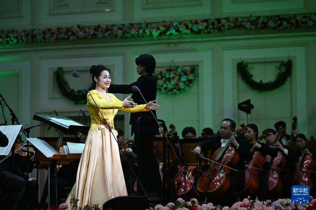 1月2日,女高音演員在音樂會上獨唱《春天狂想曲》。