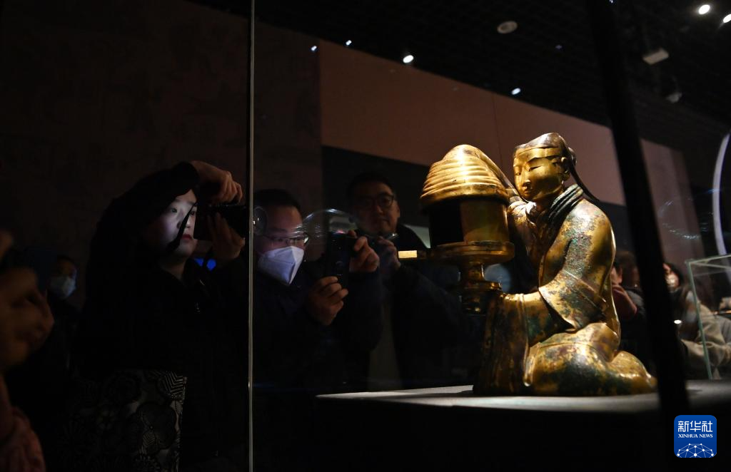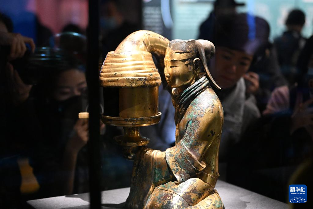 近日,在天津博物館舉行的“天開一統——秦漢文物主題展”上,包括長信宮燈在內的近400件(套)秦漢文物集中亮相,吸引觀眾前來參觀。