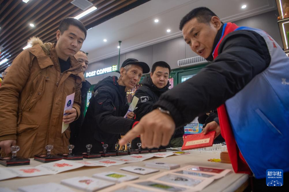 1月5日,市民在重慶觀音橋步行街舉行的發行儀式上選購《乙巳年》特種郵票及周邊產品。