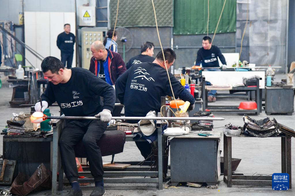 1月(yue)9日,在淄(zi)博市博山區的(de)西冶(ye)工(gong)坊(fang),工(gong)匠在加工(gong)琉璃工(gong)藝(yi)品。
