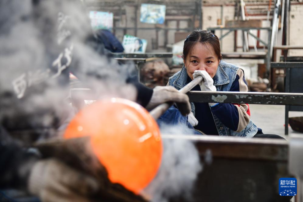 1月(yue)9日,在淄博市(shi)博山區的西冶工坊,工匠在加(jia)工琉璃工藝品。