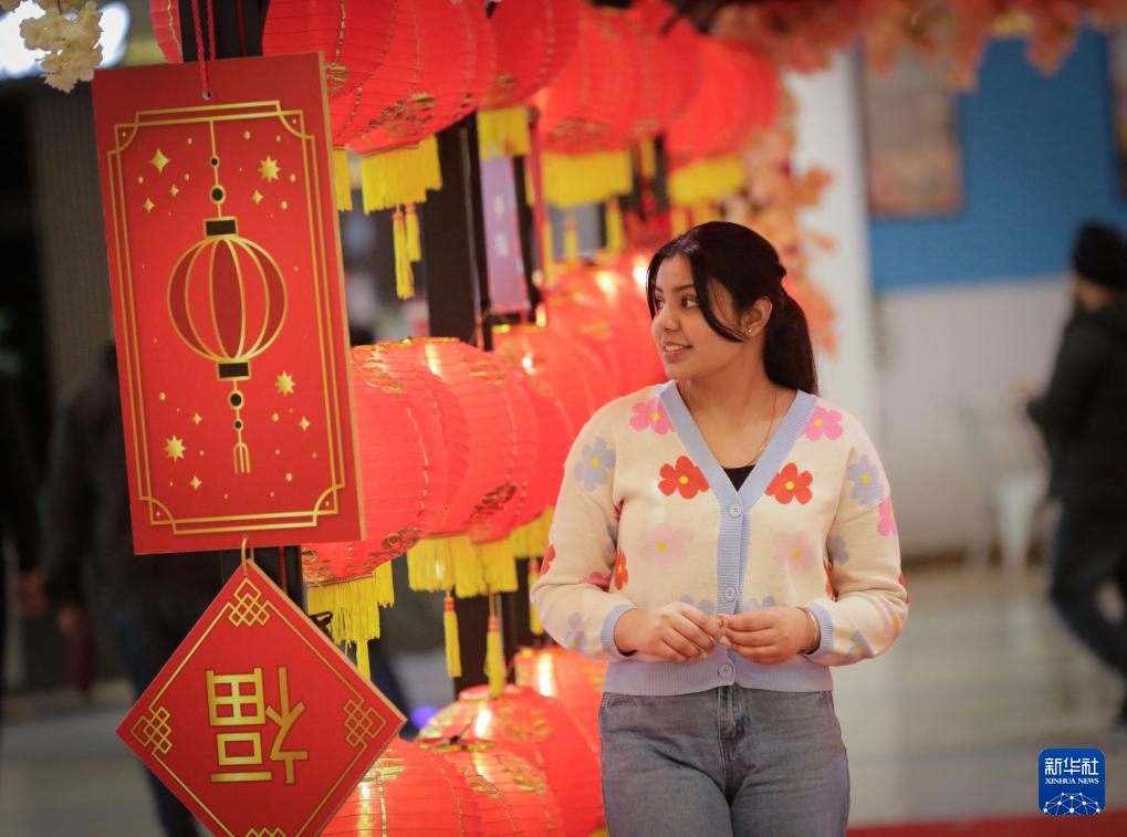 1月13日,一(yi)(yi)名女(nv)子在加拿(na)大溫哥華的一(yi)(yi)家商場(chang)內觀賞春節主題裝飾(shi)。
