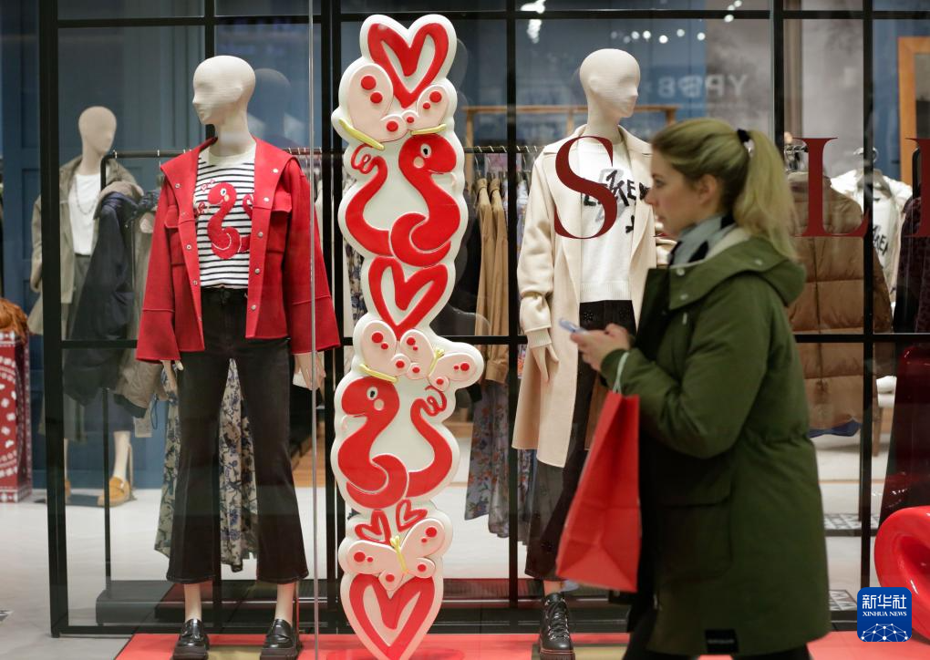 1月13日,一名女子在加拿大溫哥華的(de)一家商(shang)場內走過裝(zhuang)飾(shi)有(you)蛇年春節主題(ti)的(de)櫥(chu)窗。