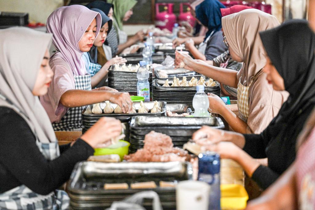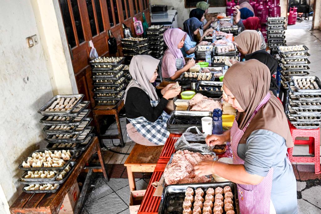 1月14日,在印度尼西亞(ya)南(nan)唐格朗,工(gong)人在一家點心作(zuo)坊制作(zuo)點心。