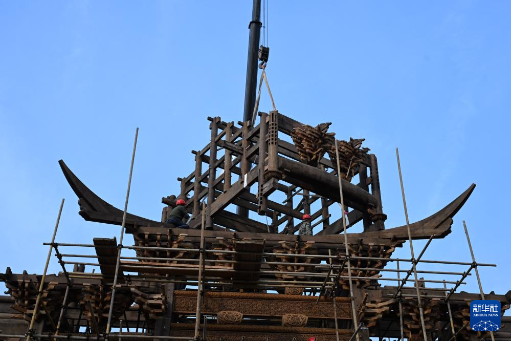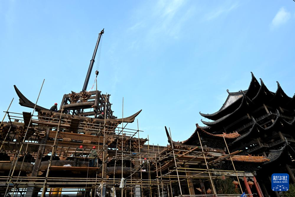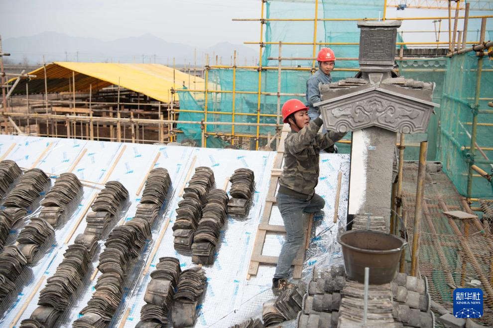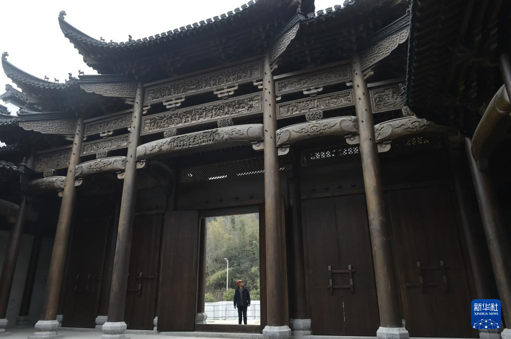 1月6日(ri),工人在黃山徽匠園(yuan)林古建(jian)(jian)有限公司廠區搭建(jian)(jian)徽派仿(fang)古建(jian)(jian)筑。