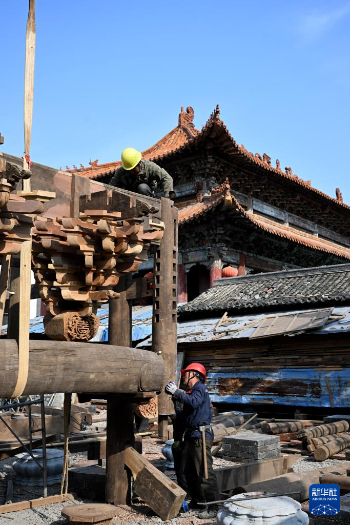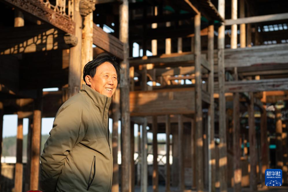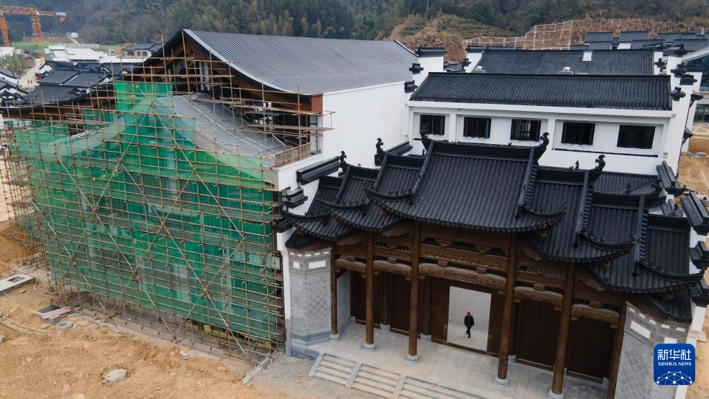 1月8日拍攝的(de)安徽省黃山市休寧縣一處傳統(tong)徽派古民居復建工地現場(chang)。