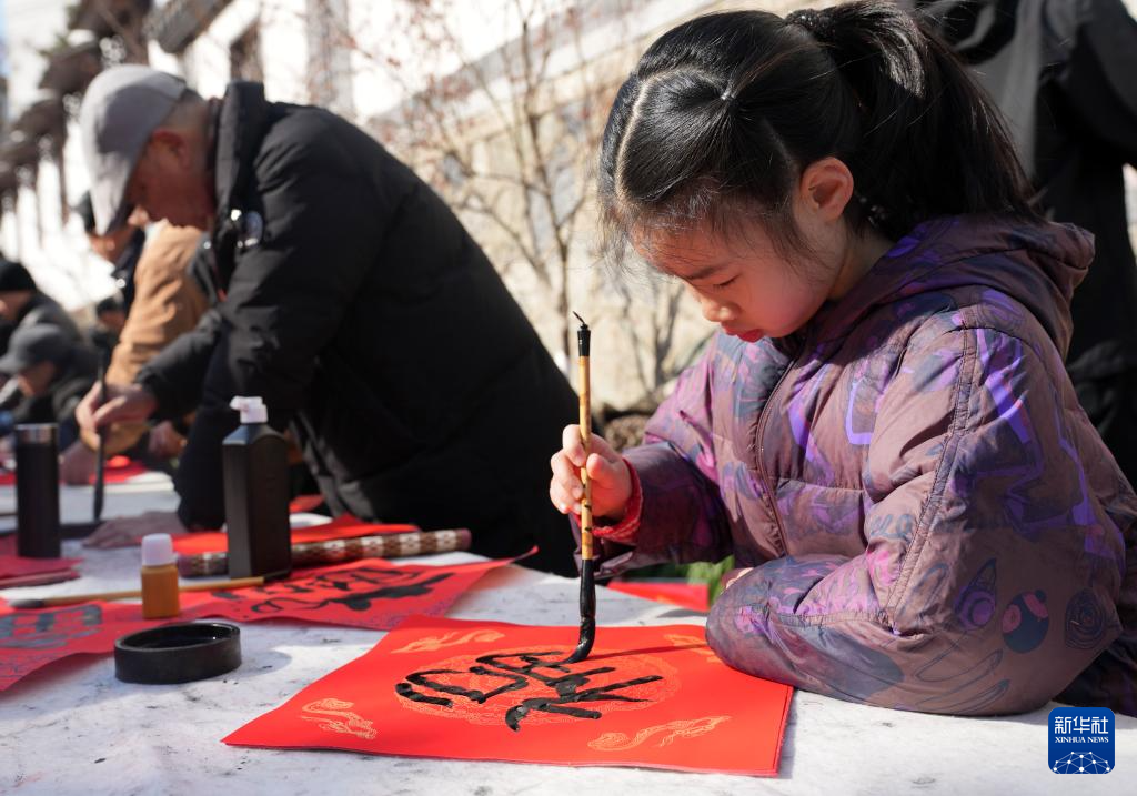 1月15日,一名小朋友在活動(dong)現場寫“福”字。