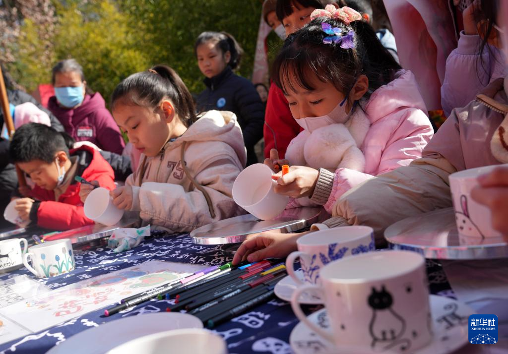 1月15日,幾(ji)名小朋友在活動現(xian)場體驗陶藝彩繪。