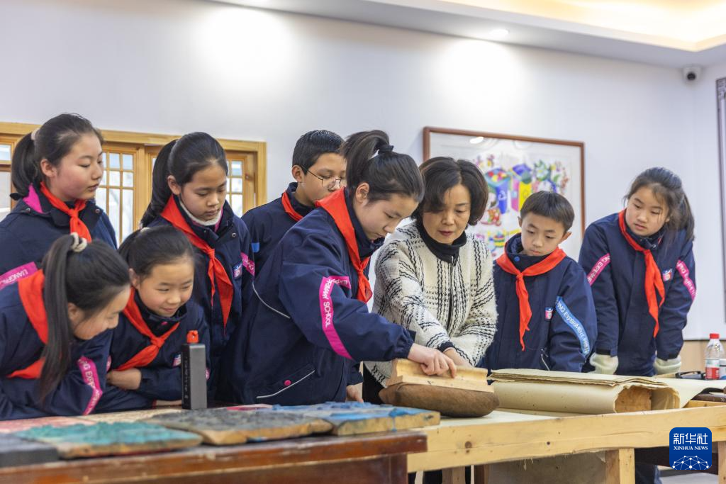 1月15日,在重慶(qing)市(shi)梁平區梁平實驗小(xiao)學(xue)少兒年畫館,梁平木版(ban)(ban)年畫市(shi)級代(dai)表性傳承人莫紹萍指(zhi)導學(xue)生們學(xue)習梁平木版(ban)(ban)年畫的刷印。