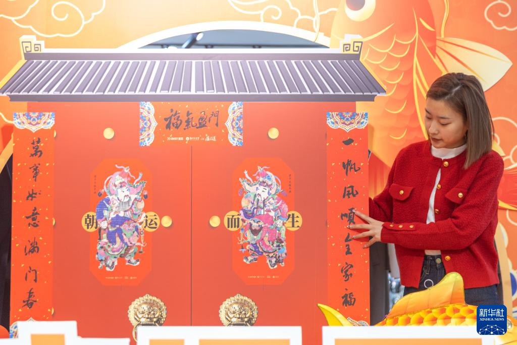 1月(yue)15日,在重慶(qing)市梁(liang)(liang)平(ping)區一商場(chang)(chang),商場(chang)(chang)工(gong)作(zuo)人(ren)員(yuan)在擺放(fang)帶有梁(liang)(liang)平(ping)木版年畫元(yuan)素的新春裝(zhuang)飾。