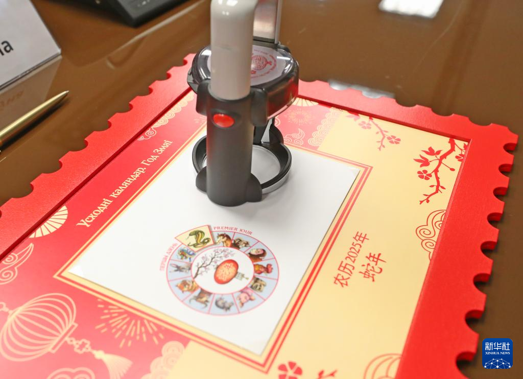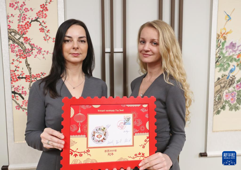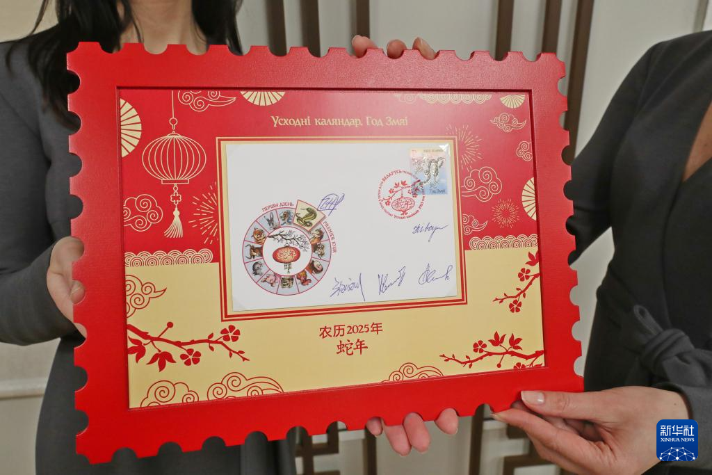 1月15日,工作人員在白俄羅斯(si)明斯(si)克展示《東方歷法:蛇年》郵票首日封(feng)。