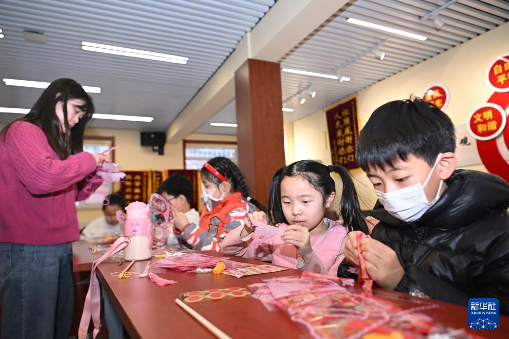 1月16日,在(zai)天津市河東區大王莊街道麟祥里社(she)區活動(dong)室(shi),小朋(peng)友在(zai)社(she)區志愿者指導下(xia)制(zhi)作春(chun)節(jie)花(hua)燈。