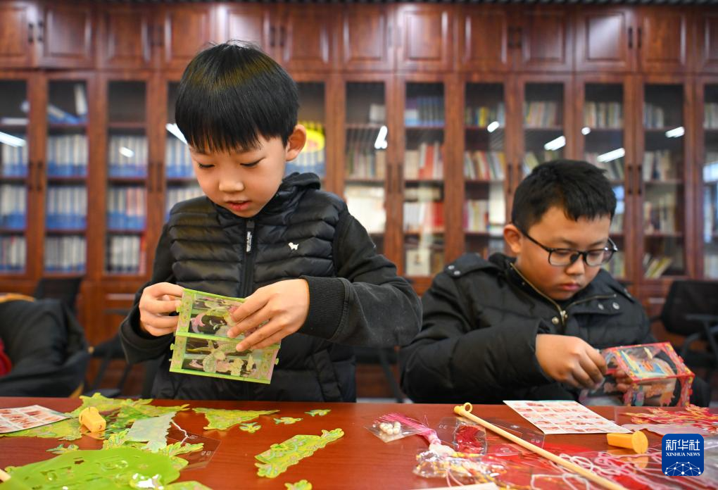 1月(yue)16日,在天津市河東區(qu)大王莊街道(dao)麟祥里社區(qu)活動室(shi),小朋友在制作春(chun)節(jie)花燈。