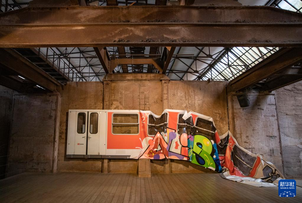 在(zai)德國薩爾(er)州的(de)弗爾(er)克林根鋼鐵廠(chang)遺(yi)址,工業設(she)施被(bei)植物藤(teng)蔓(man)和參加“城市藝術雙(shuang)年展”的(de)藝術作品裝(zhuang)扮起來(2024年12月(yue)17日攝(she))。