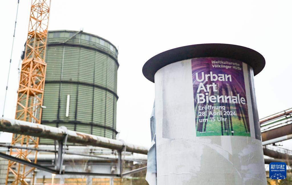 這(zhe)是在(zai)德國薩爾(er)(er)州的弗(fu)爾(er)(er)克林根鋼(gang)鐵廠遺址(zhi)拍攝(she)的“城市藝(yi)術雙年(nian)(nian)展”海報(bao)(2024年(nian)(nian)12月(yue)17日(ri)攝(she))。