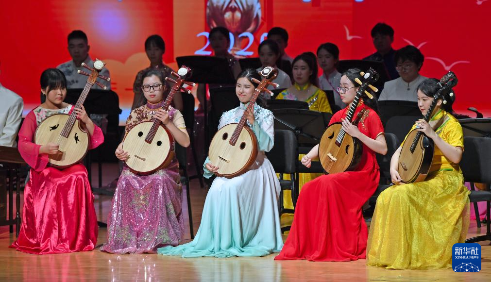 1月19日,南京大學民(min)族樂團在音樂會上演(yan)出(chu)中阮齊奏《絲路駝鈴(ling)》。