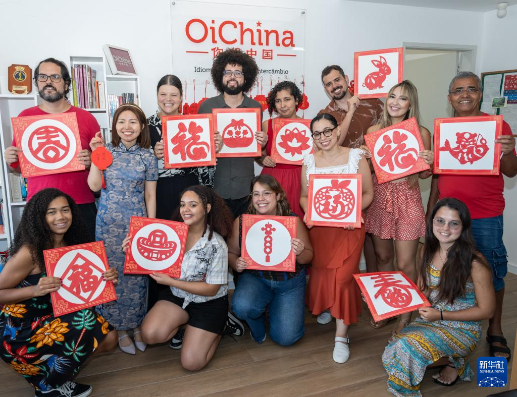 1月18日(ri),人們在巴西里約熱內盧舉行的(de)中國春節文化體驗活動上展示他們一起制作(zuo)的(de)剪紙。