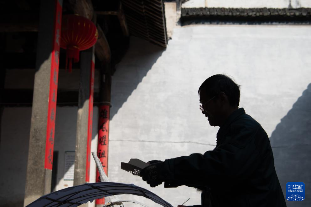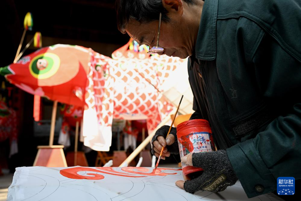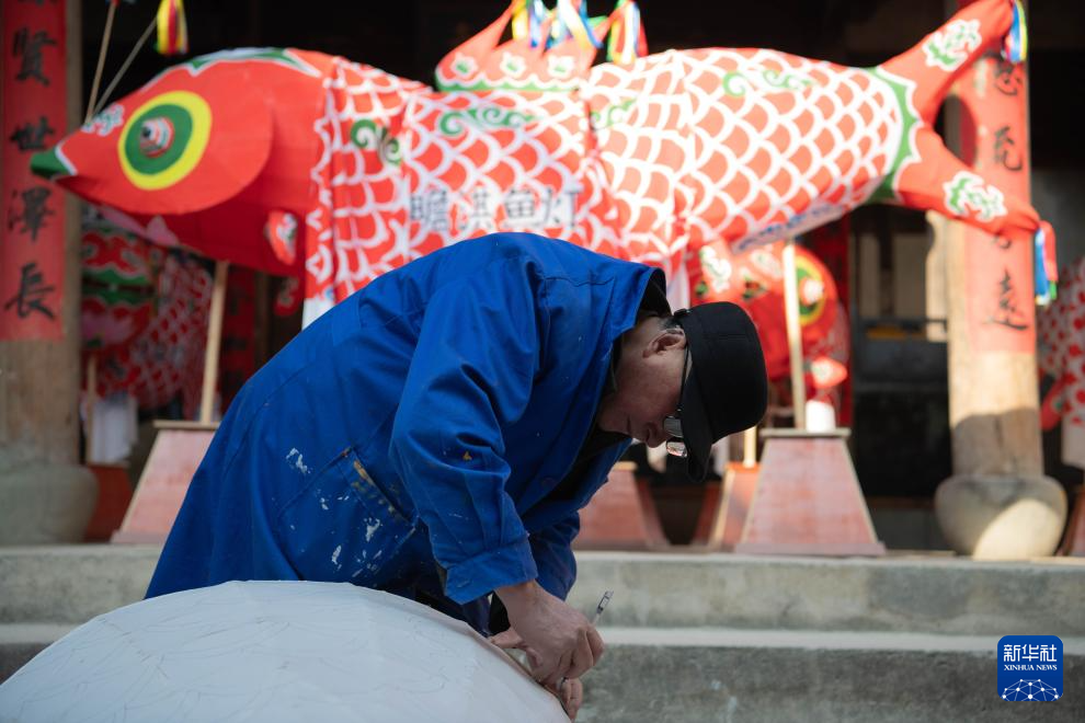 1月6日,在(zai)安徽省(sheng)黃山市歙縣(xian)北岸鎮瞻淇村,瞻淇魚燈(deng)非遺傳承人(ren)汪宇昉在(zai)制作魚燈(deng)。