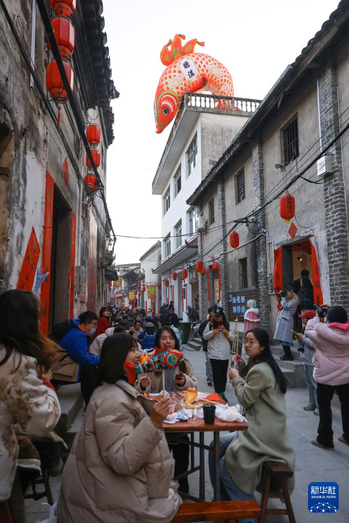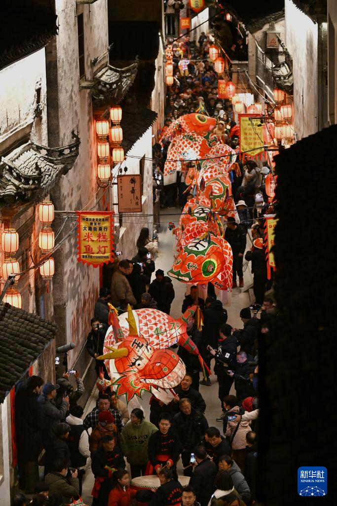 臨近(jin)春節,安徽省(sheng)黃山市歙縣瞻(zhan)淇村舉行了數場魚燈巡游活(huo)動,眾多游客來到這里,感(gan)受這座千年古村的獨特風景。