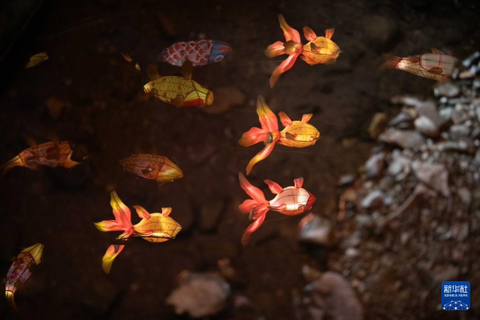 這(zhe)是1月10日在安徽(hui)省黃山市歙縣北(bei)岸鎮瞻(zhan)淇村(cun)拍(pai)攝(she)的魚燈倒影。