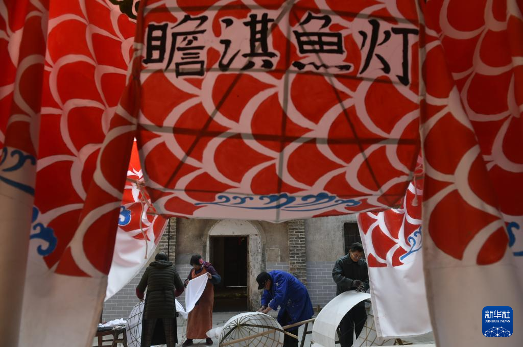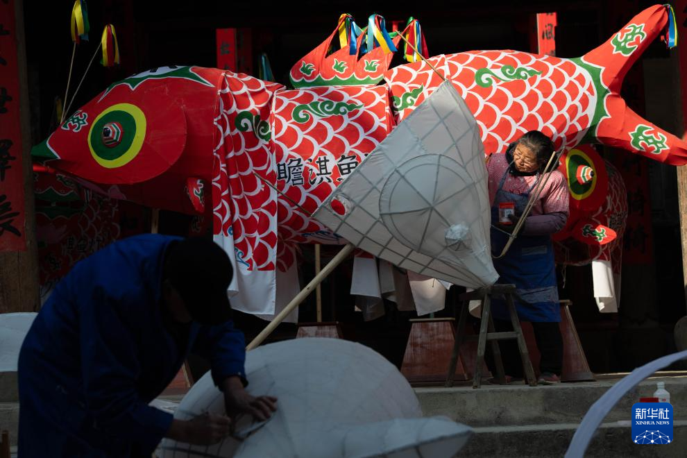 1月6日,在安徽省黃山市歙(she)縣北岸鎮瞻淇村(cun),村(cun)民在制(zhi)作魚(yu)燈。