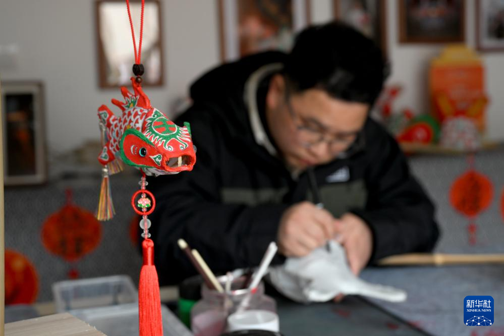 1月6日(ri),在安徽省黃山市歙縣北岸鎮瞻淇村,瞻淇魚(yu)(yu)燈非遺傳承人汪(wang)宇昉在制作(zuo)魚(yu)(yu)燈。