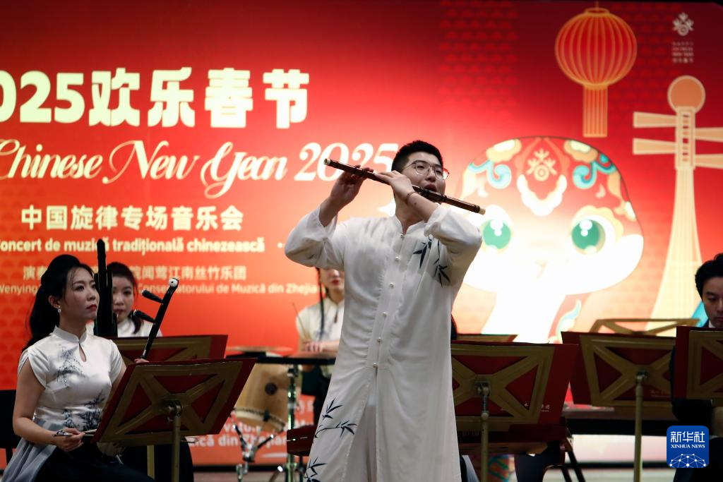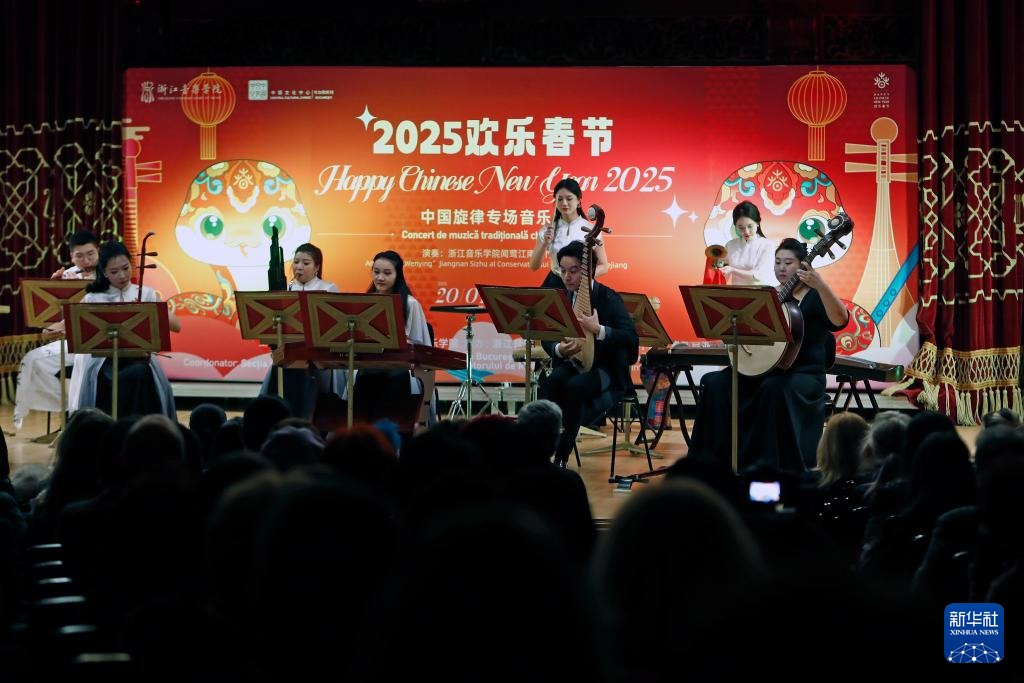 1月(yue)20日晚,由(you)中國浙江(jiang)音(yin)(yin)樂(le)學院聞(wen)鶯江(jiang)南絲竹樂(le)團帶來的2025“歡樂(le)春節”中國旋(xuan)律專場(chang)音(yin)(yin)樂(le)會在羅(luo)馬尼(ni)亞布加勒斯特的雅(ya)典娜音(yin)(yin)樂(le)廳舉行(xing)。