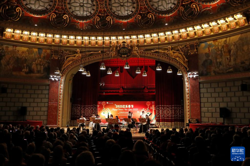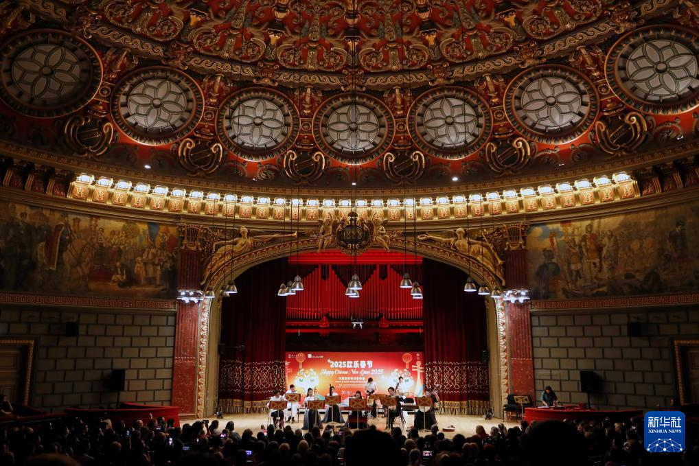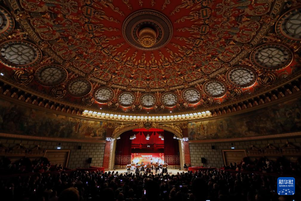 這是1月20日在羅馬尼亞首(shou)都布加勒斯(si)特的雅(ya)典娜音樂(le)(le)廳拍攝(she)的2025“歡樂(le)(le)春節”中國旋(xuan)律專場音樂(le)(le)會現場。