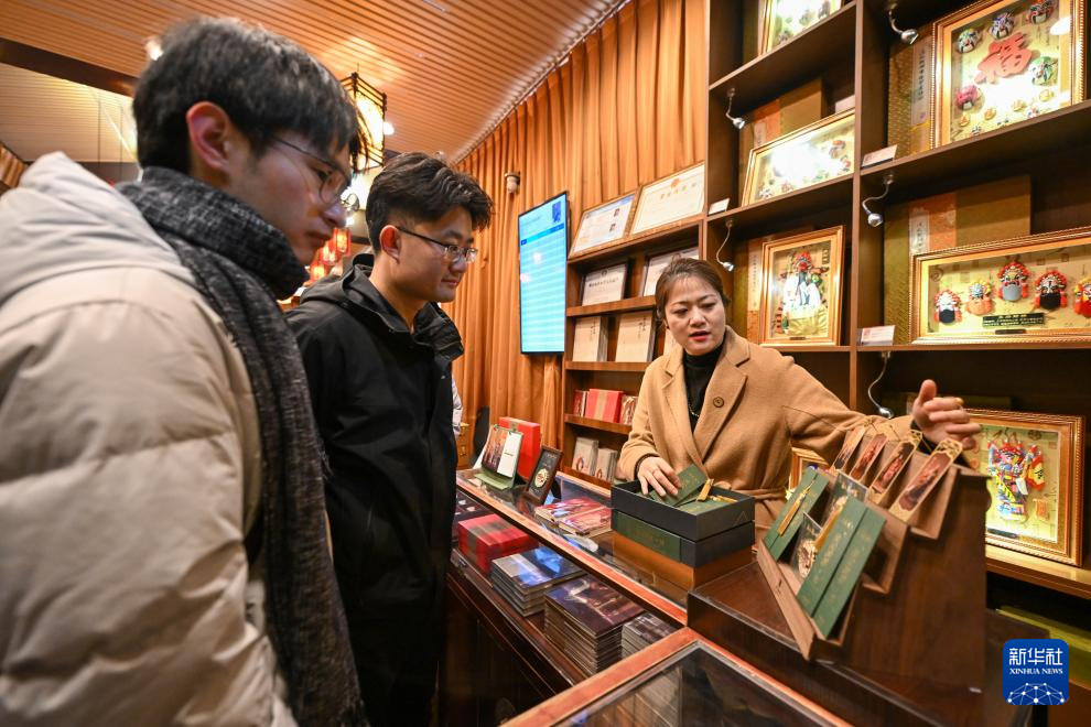 游客在天津古文化街泥(ni)人(ren)張世(shi)家選購文創產品(1月20日攝)。