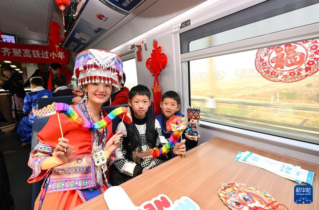 小(xiao)(xiao)年來(lai)臨之際(ji),上(shang)(shang)海客運(yun)段高鐵四車(che)隊在由上(shang)(shang)海虹橋站發往廈(sha)門北(bei)站的G1653次列車(che)上(shang)(shang)舉辦“中(zhong)國年,民(min)(min)族情,齊(qi)聚高鐵過小(xiao)(xiao)年”主(zhu)題活(huo)動(dong)。車(che)隊職工為旅(lv)客帶來(lai)民(min)(min)族歌(ge)舞(wu)、寫福字(zi)等活(huo)動(dong),讓旅(lv)客在旅(lv)途中(zhong)感受(shou)濃厚的節日氛圍。
