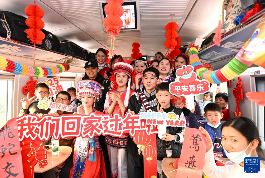 1月(yue)21日,鐵(tie)路上海客(ke)運段職工與旅客(ke)在車廂(xiang)里合(he)影。