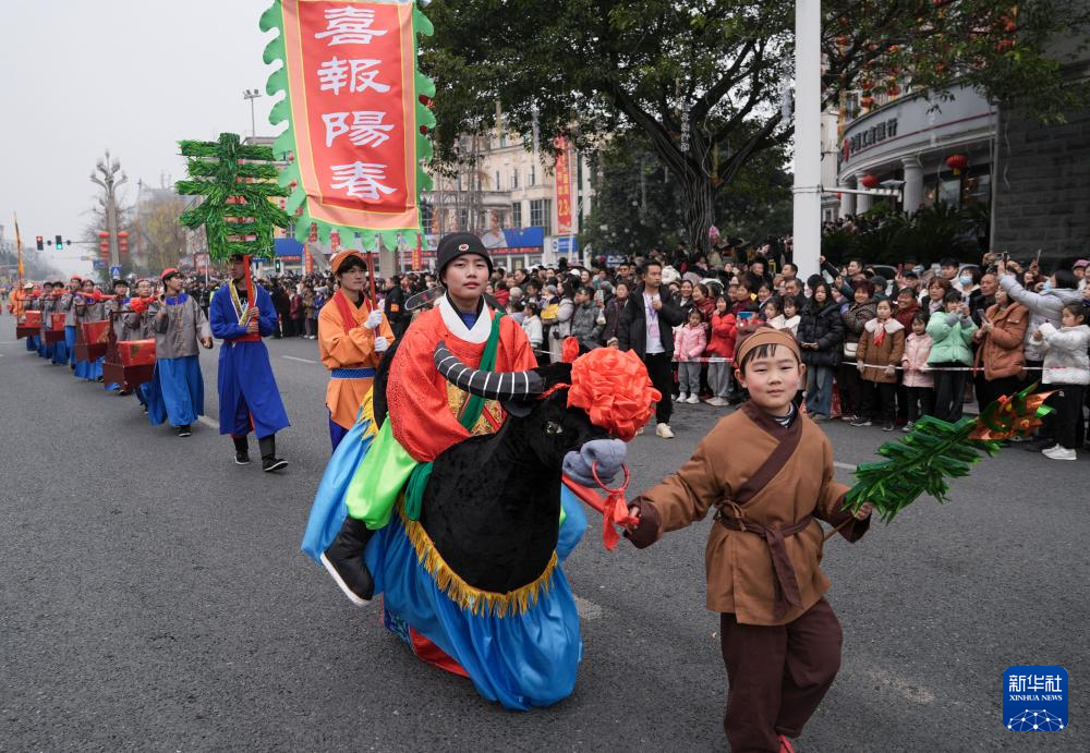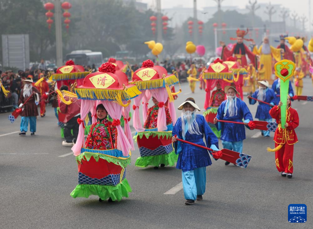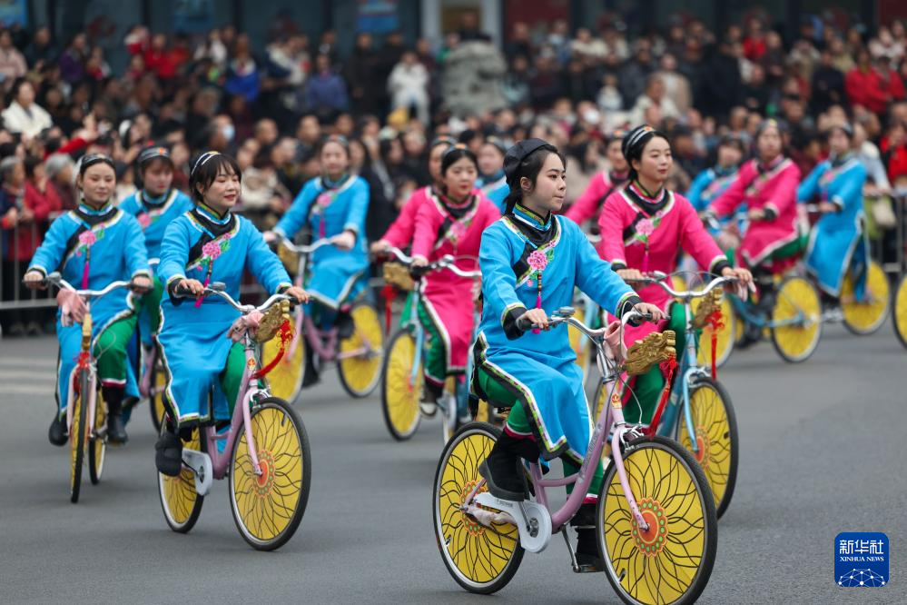 1月22日在綿竹(zhu)年畫(hua)節(jie)開幕(mu)式上(shang)拍攝的巡游隊(dui)伍。