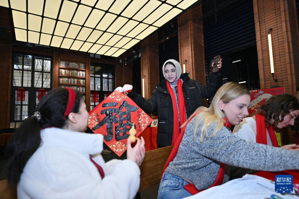 當日,天津(jin)外國(guo)(guo)語大(da)學國(guo)(guo)際教育(yu)學院的(de)50多名留學生參加“書(shu)香(xiang)鐘(zhong)書(shu)閣·共賞中(zhong)(zhong)國(guo)(guo)年”來華留學生春(chun)節(jie)文化體(ti)驗活動。留學生們在活動中(zhong)(zhong)體(ti)驗特色民俗,感受中(zhong)(zhong)國(guo)(guo)春(chun)節(jie)的(de)獨特魅力(li)。