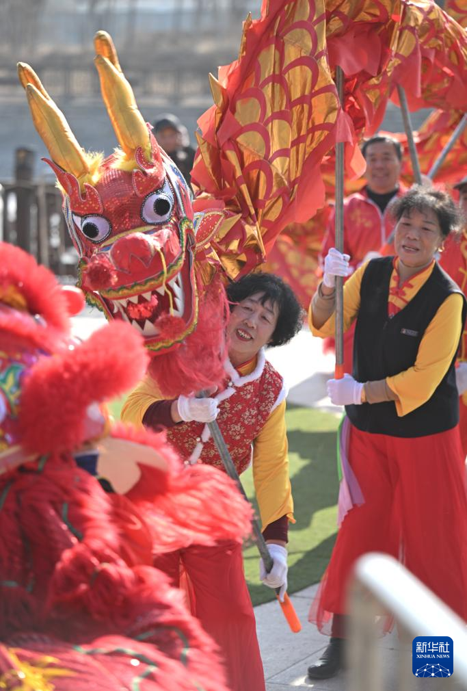 2月2日,演藝人員在(zai)楊柳青古鎮舞(wu)龍。