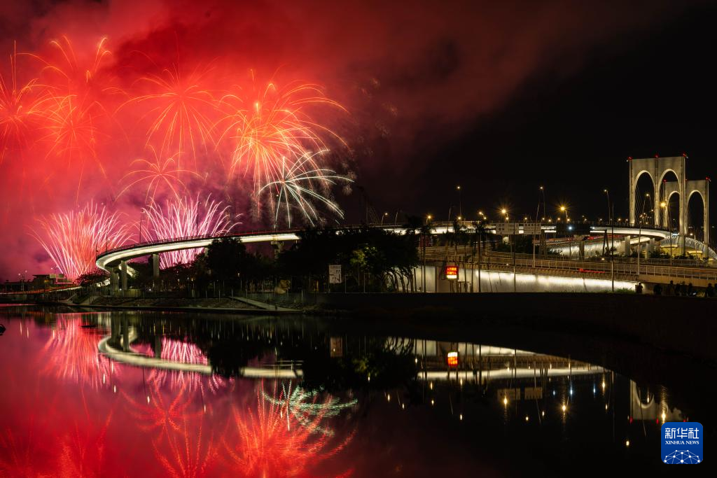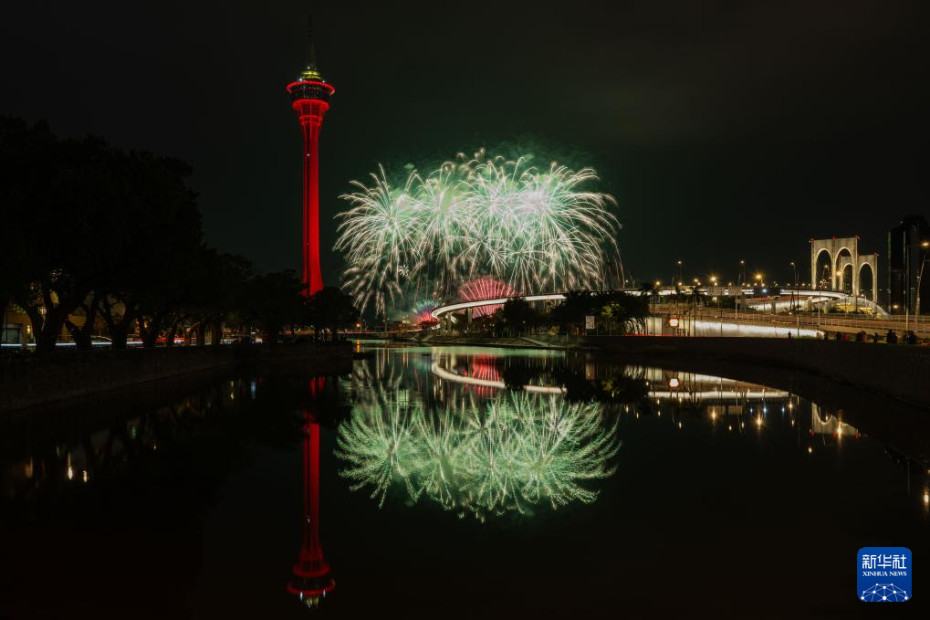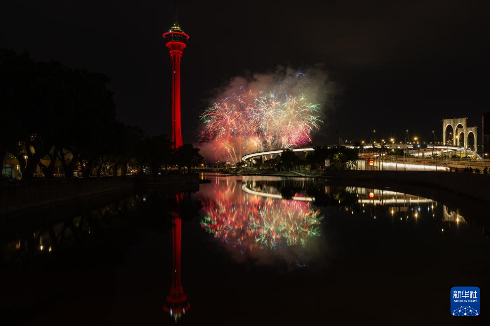 2月4日,澳門特區政府(fu)旅(lv)游(you)局舉行的(de)“歡樂(le)春節靈蛇獻(xian)瑞(rui)煙花匯演”第二場在旅(lv)游(you)塔(ta)對(dui)出(chu)海面絢(xuan)麗(li)綻放。