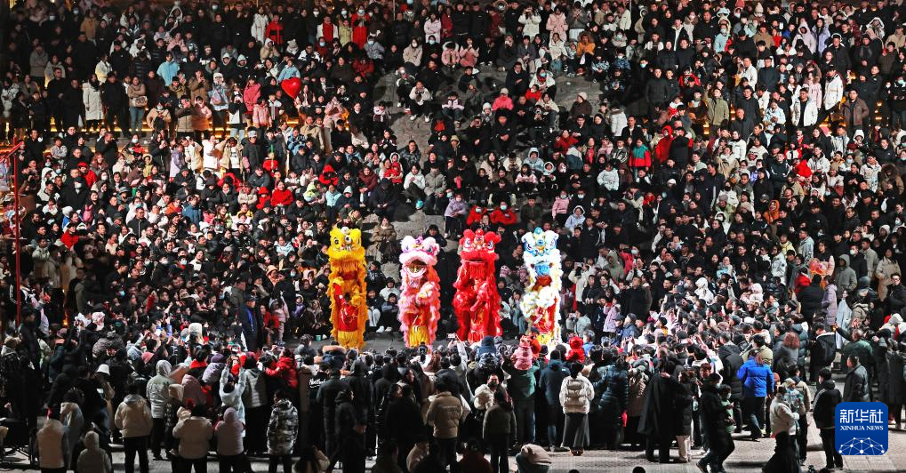 1月29日(ri),游(you)客在(zai)山東省臨(lin)沂市郯城縣(xian)郯國古城景區觀看舞獅表(biao)演。