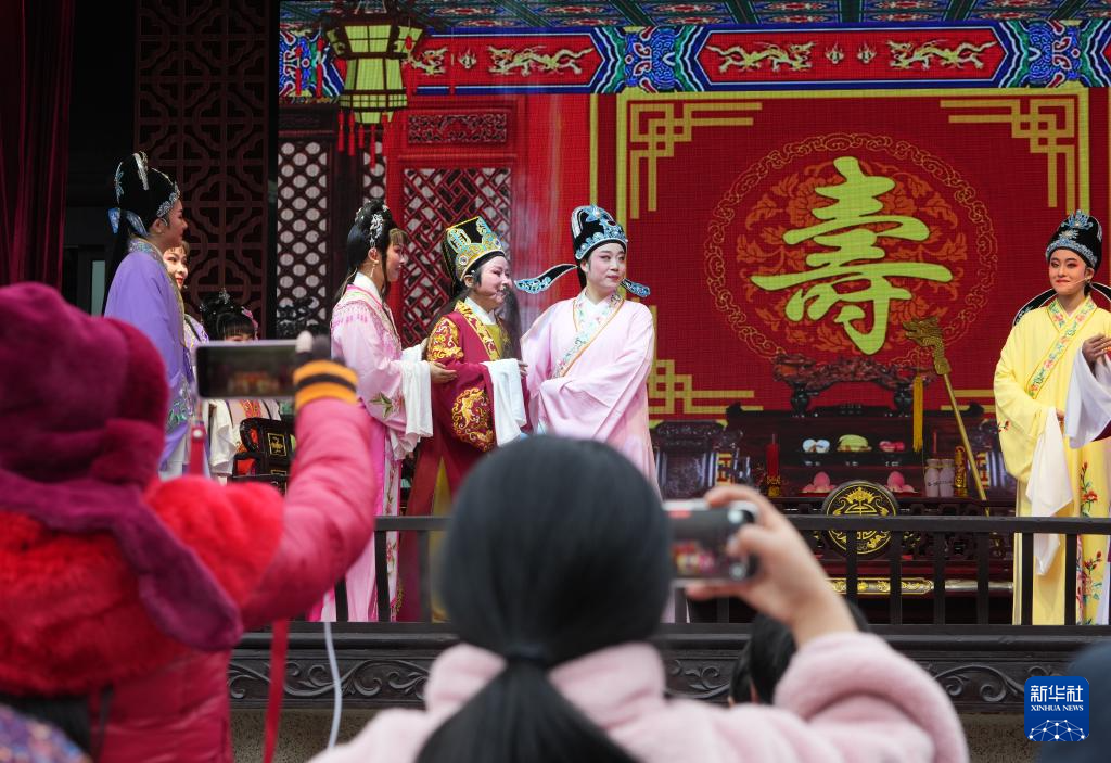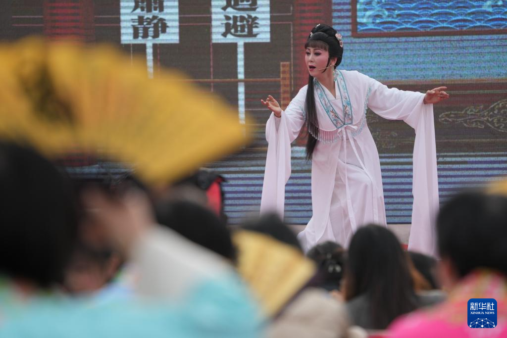 在紹(shao)(shao)興市越城(cheng)區,演(yan)員在“紹(shao)(shao)興古城(cheng)過大年”活動上(shang)表演(yan)越劇《何(he)文秀》選段(1月29日攝)。