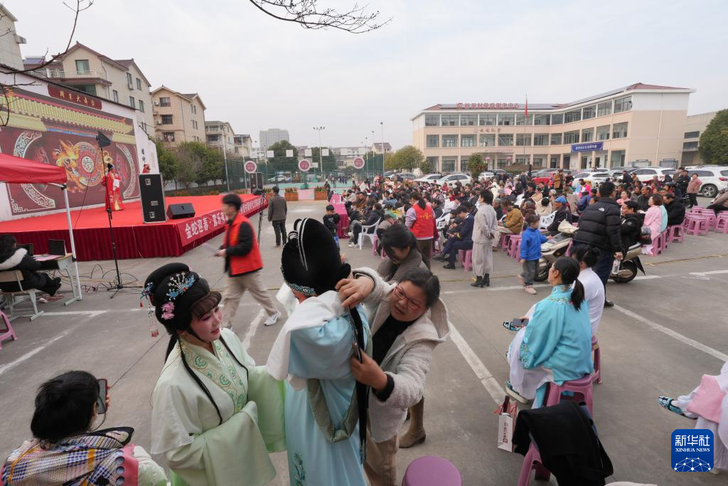 在紹興市柯(ke)橋區夏(xia)履鎮蓮增(zeng)村,民(min)間(jian)越劇團晶蕾藝術團為村民(min)表演越劇《五女拜壽》(1月25日攝)。