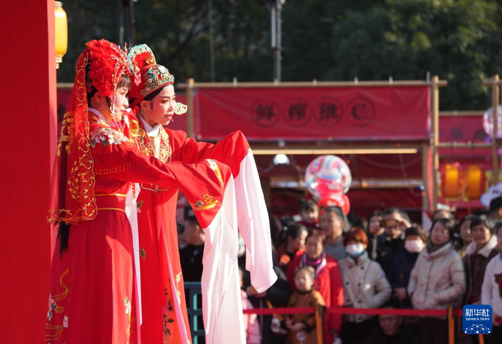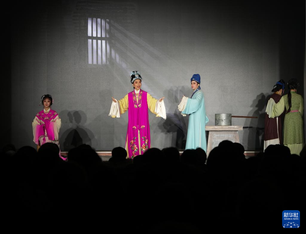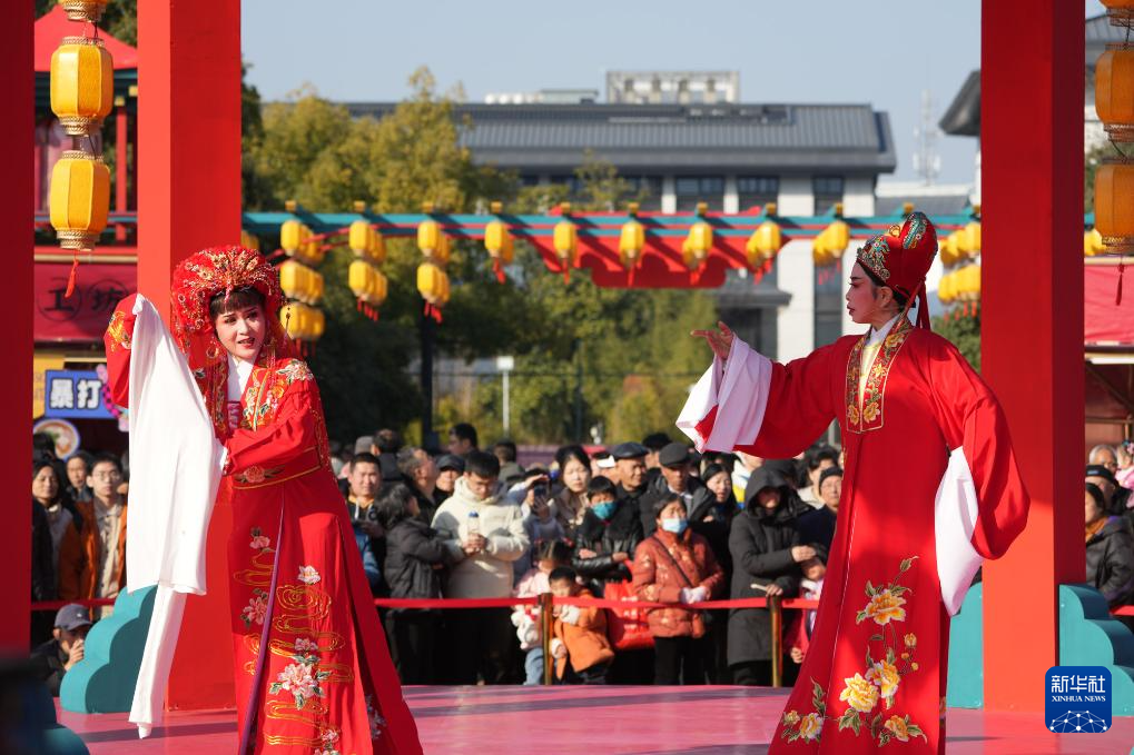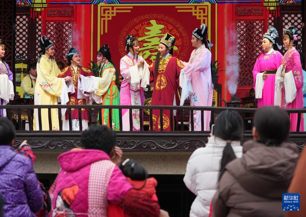 在紹興(xing)市越城(cheng)(cheng)區,演員在“紹興(xing)古(gu)城(cheng)(cheng)過大年(nian)”活動上(shang)表演越劇《何文秀》選段(duan)(1月29日攝)。