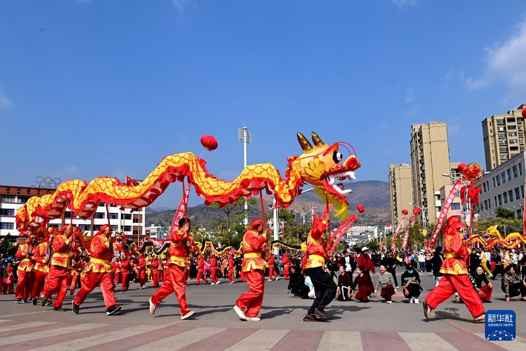 當日是農歷(li)正(zheng)月初(chu)九(jiu),云南(nan)省大(da)理(li)白族自治州南(nan)澗(jian)彝族自治縣舉行龍燈會,來自全縣8個鄉鎮的30多支(zhi)表演(yan)隊伍身著(zhu)盛裝(zhuang)齊聚南(nan)澗(jian)縣城(cheng),鬧(nao)龍燈慶新春。