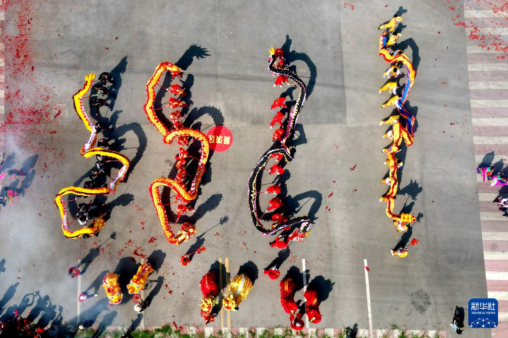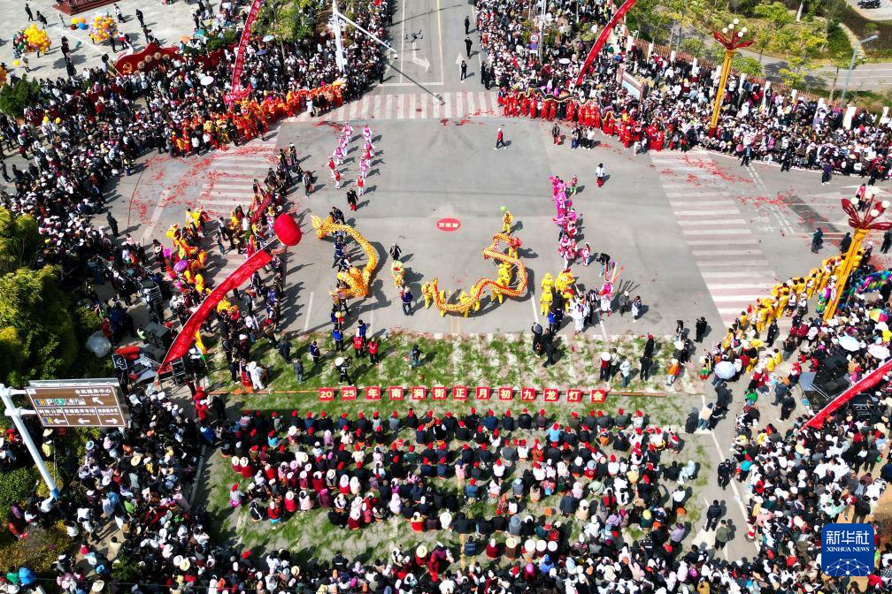 2月6日(ri),人(ren)們在南澗縣龍燈會上表(biao)演舞龍(無人(ren)機照片)。