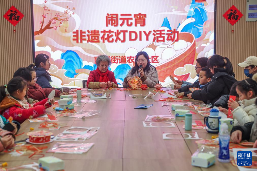 2月6日,嘉興(xing)市南湖區南湖街道農翔社區的(de)志愿(yuan)者帶(dai)領居(ju)民一(yi)起做(zuo)元宵花燈。