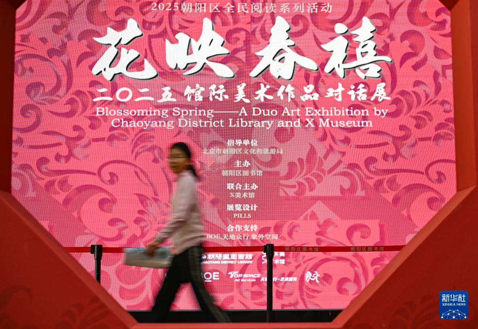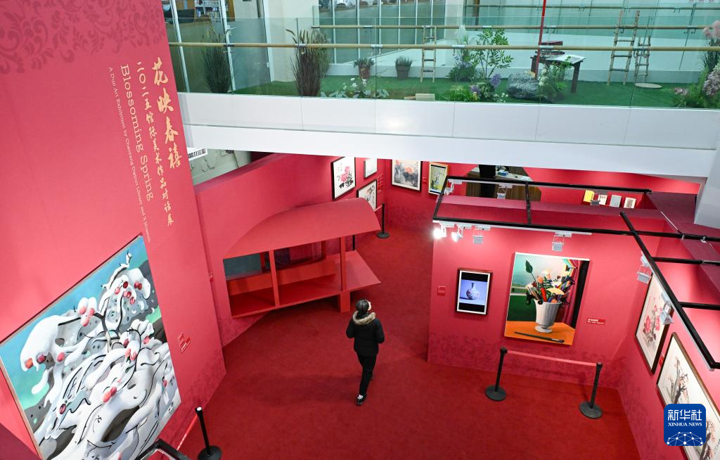 2月9日拍攝的在(zai)朝陽區圖書館(guan)勁松館(guan)舉(ju)辦的“花映春禧”二(er)〇二(er)五館(guan)際美(mei)術作(zuo)品對話展。