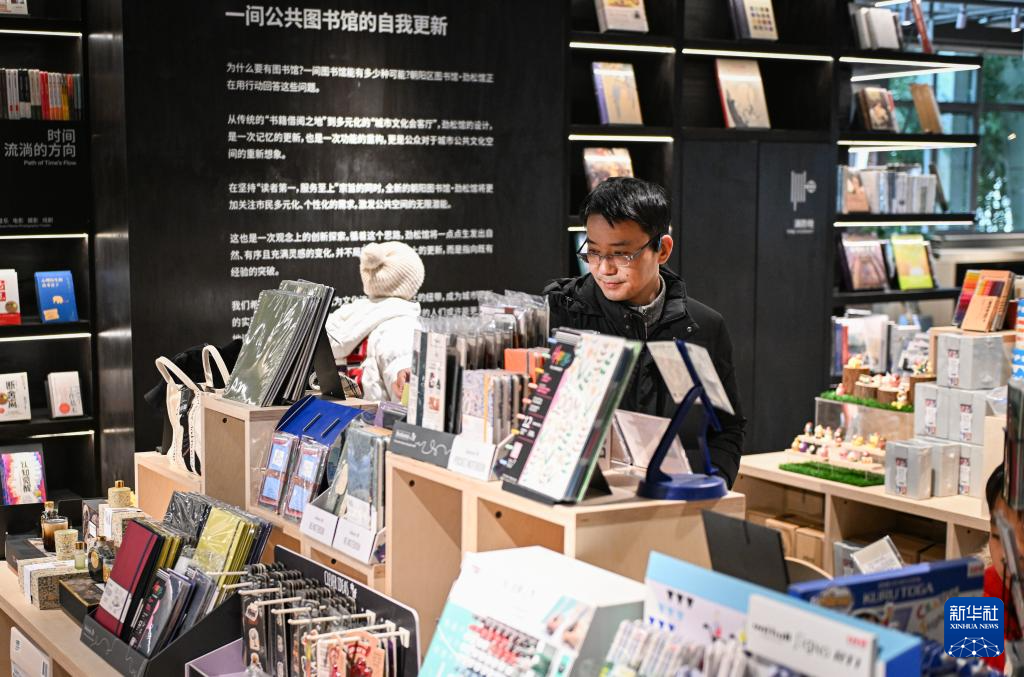 2月9日,顧客在(zai)朝陽區圖書館勁松館選(xuan)購文創產品(pin)。