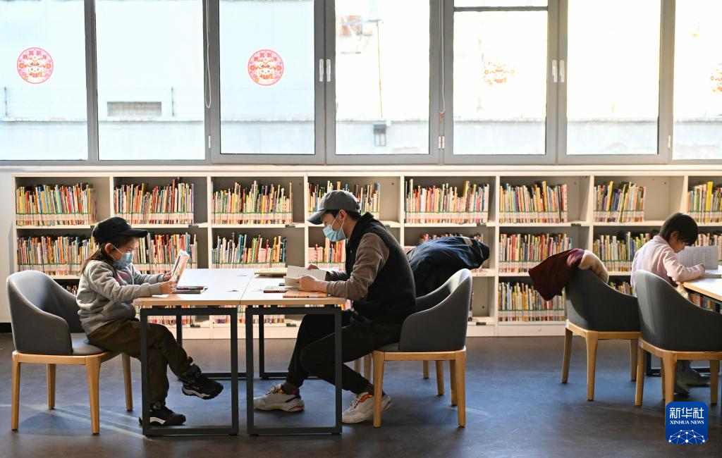 2月9日,在(zai)朝陽區(qu)圖(tu)書館勁松館青少(shao)年閱讀(du)區(qu),大小讀(du)者一起(qi)閱讀(du)。